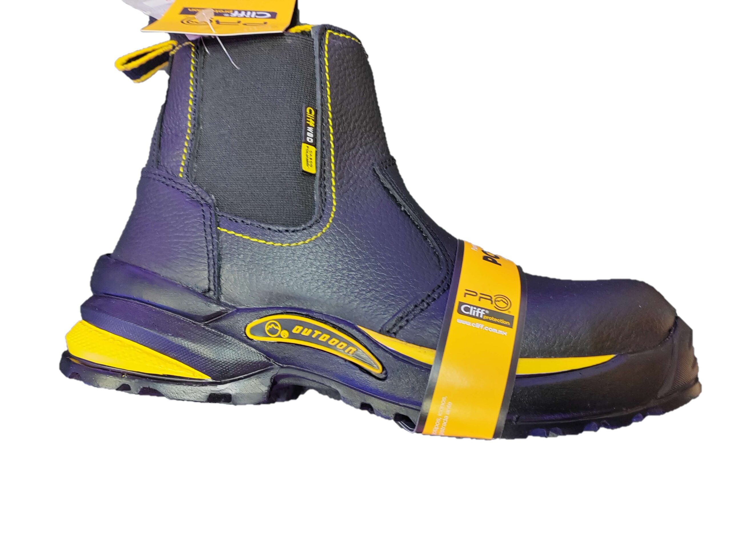BOTA CORTA CLIFF 5046 CASCO POLIAMIDA (casco similar al plástico misma resistencia que las de casco metálico) SUELA HULE 25.5 AL 29.5 (negra vivo amarillos) sin ojillos de metal, para labores eléctricas preferente, suela hule, seguridad industrial, ZAPATO CON CERTIFICACIÓN DE NORMA OFICIAL MEXICANA; SUELA INYECTADA AL CORTE